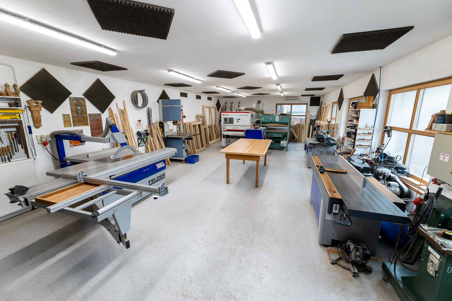 Műhelyem Eger mellett, Felsőtárkányban található. 100 m² alapterülettel rendelkezik és kivétel nélkül magas minőségű faipari gépekkel van felszerelve.